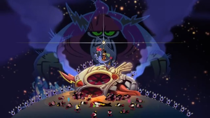 Banjo is a song from the episode "The Brainstorm". It plays during the hypothetical, and eventually real, failed invasion on Flendar. In it some Watchdogs are seen bruised or otherwise defeated, Lord Hater and Peepers fall while Wander and Sylvia, both on top of Lord Hater's destroyed spaceship, pose for a final shot. The music is based on the final movement of Beethoven's Symphony No. 9 in D minor, Op. 125.