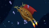 The Flea's spaceship is a spaceship seen in "The Ball". It was used by the flea pilot to take Beeza, Wander and Sylvia away from the last planet in Ballzeria as it is destroyed by Buster, and then by Wander as he tried one last idea: to have the fleas live in Buster.
