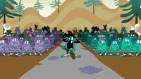 Although the laser guns were not shown hitting things often during the feud between the families, their extreme power was shown twice: Once when an accidental shot set out a nearby small village on fire, and again when Wander used one of them to destroy the snowy part of Graknor's mountain, in order to solve the aforementioned problem.